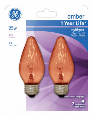 GE, 25FM/A/CF2-TP4, 2 Pack, 25W, Amber Flame Shaped Bulb, Multi-Purpose Decorative, Medium Base.